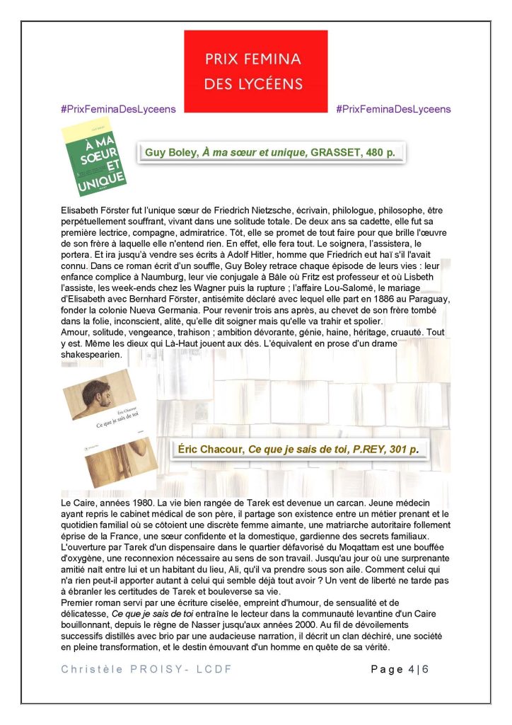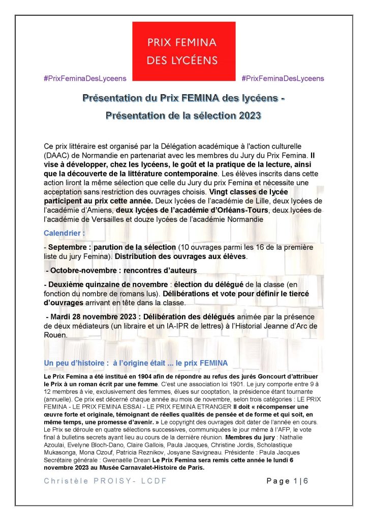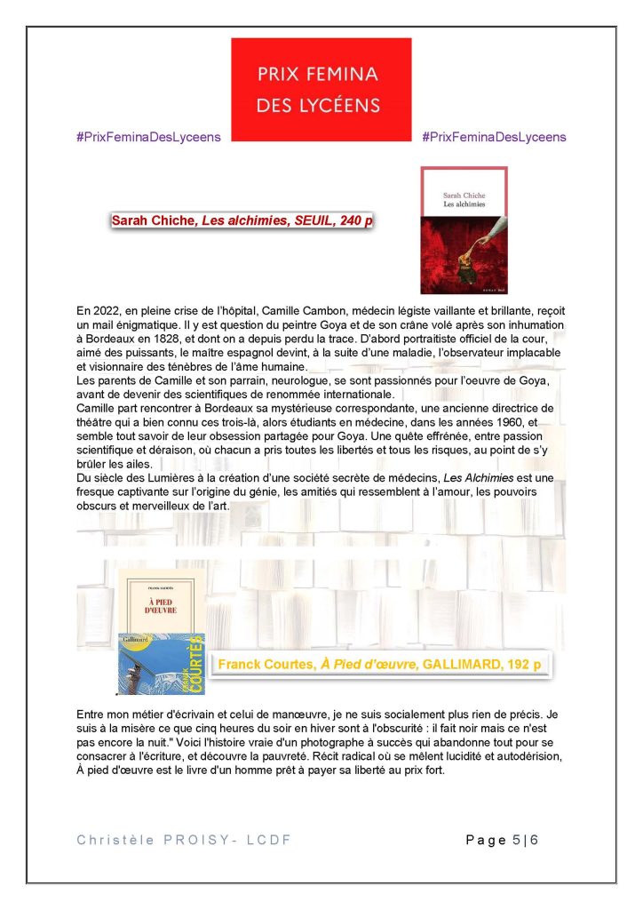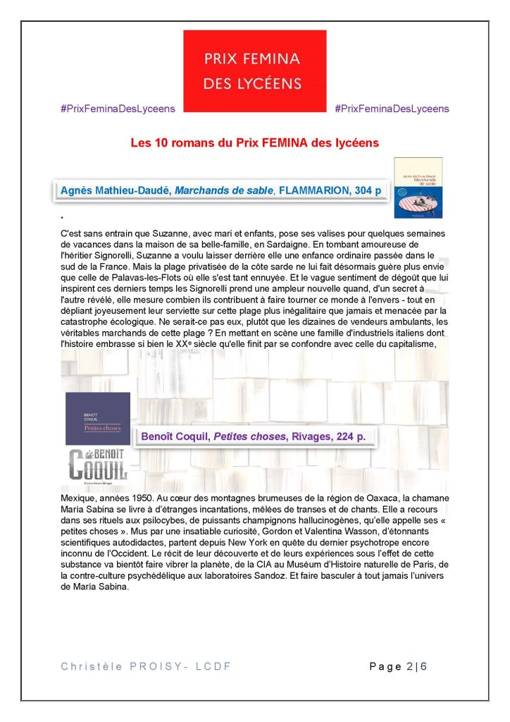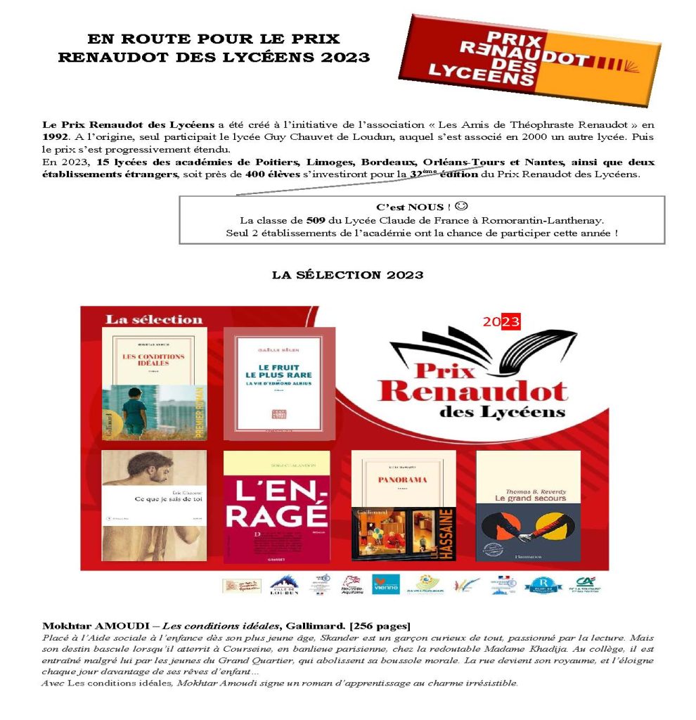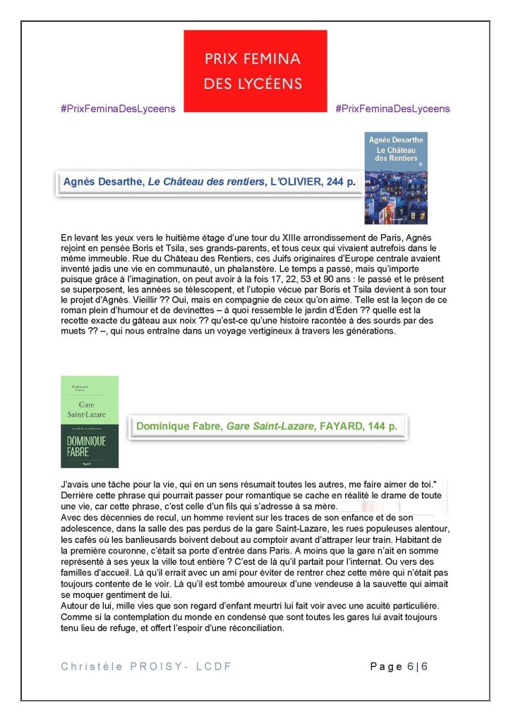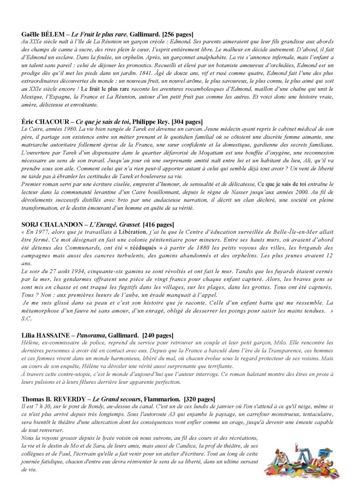 accompagnés par leur professeur de Français, Madame PROISY, liront les 10 romans de la sélections du