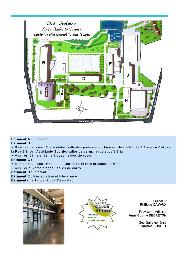 Découverte des lieux (salle de cours, salles de travaux pratiques, internat, self)